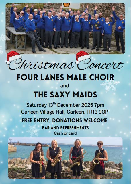Carleen Village Hall are happy to present a Christmas Carol Conrcert along with Porthleven Town Band Tickets are £5 on the…